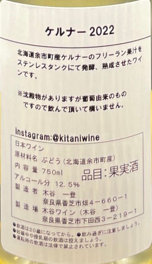 日本ワイン|木谷ワイン / ケルナー(フリーラン、ステンレスタンク熟成)2022